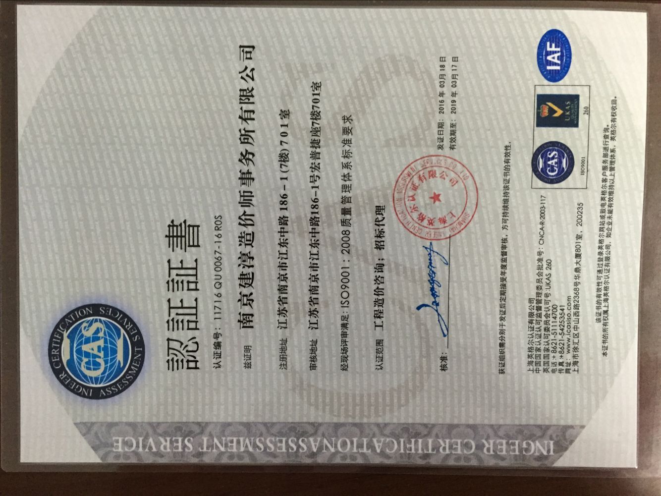 經(jīng)現(xiàn)場評審滿足:ISO9001:2008質(zhì)量管理體系標(biāo)準(zhǔn)要求 認(rèn)證范圍:工程造價咨詢、招標(biāo)代理 有限期至2019年3月17日【詳細(xì)】